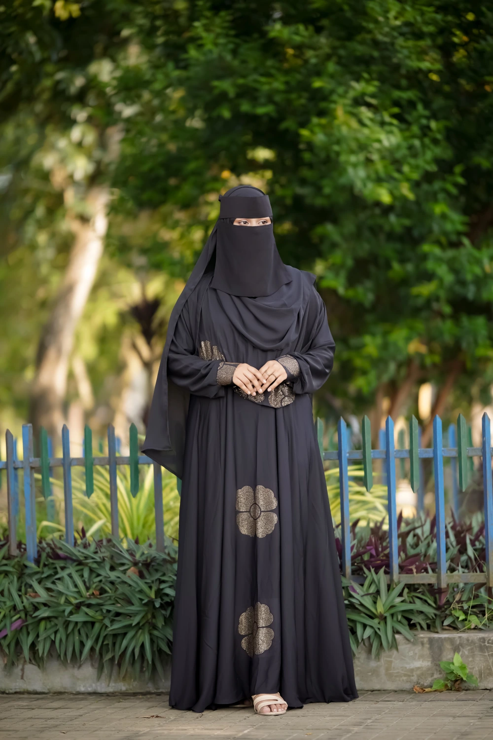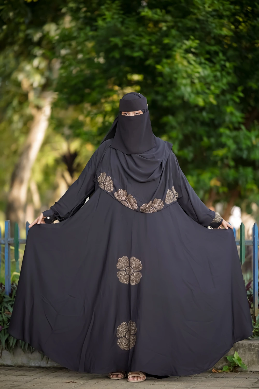 Uniquely creative, this comfortable abaya has eye-catching deep pleats on the arms, adorned with button flow. Beauty aside, it is also eminently practical, with a shoulder zipped opening , button cuffs to easily pull up or close the sleeves and side slit pockets to keep all your belongings close at hand.